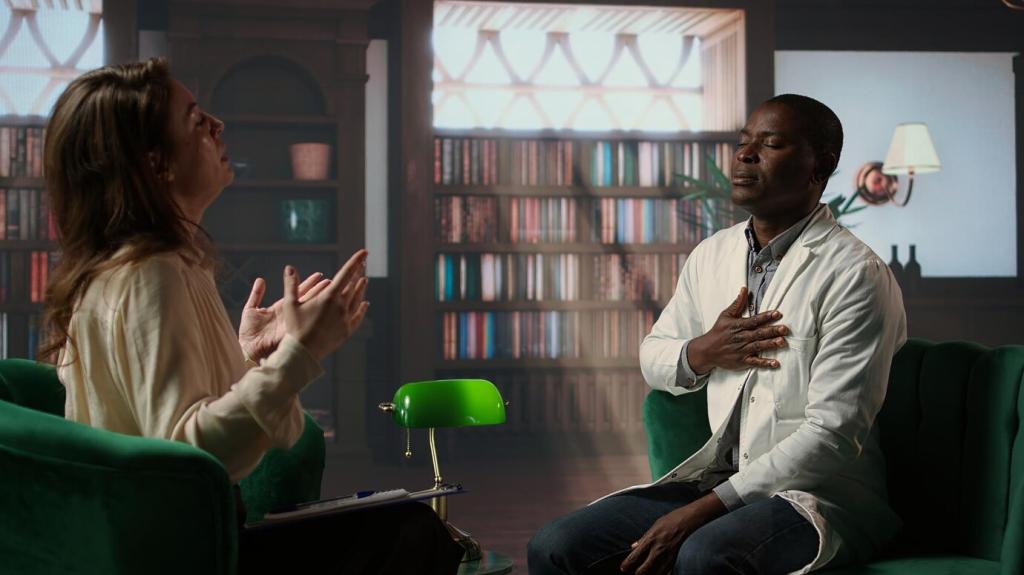 Atmen Sie vier Zähler ein, sechs aus, spüren Sie, wie sich der Bauch bewegt. Diese Atmung beruhigt, vertieft die Stimme und erhöht Tragfähigkeit. Summen Sie vorab, um Resonanzräume zu öffnen. Trinken Sie Wasser und vermeiden Sie unmittelbar vorher sehr kalte Getränke.